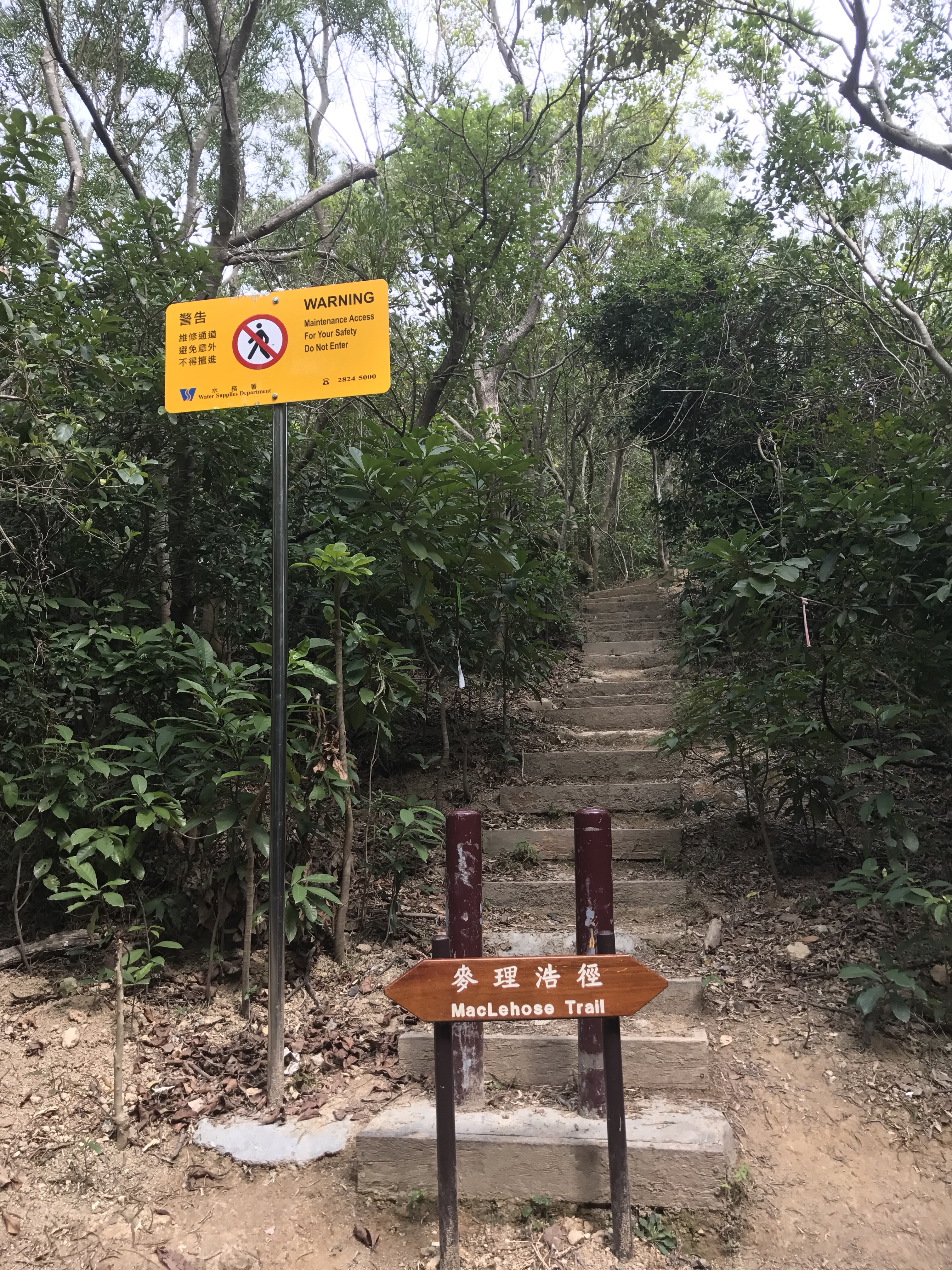 我們一路沿著赤徑方向步行約1.5小時,便到達「蚺蛇尖」入口。⛰️⛰️看到黃色警告牌,這裹就是登上「蚺蛇尖」的入口。