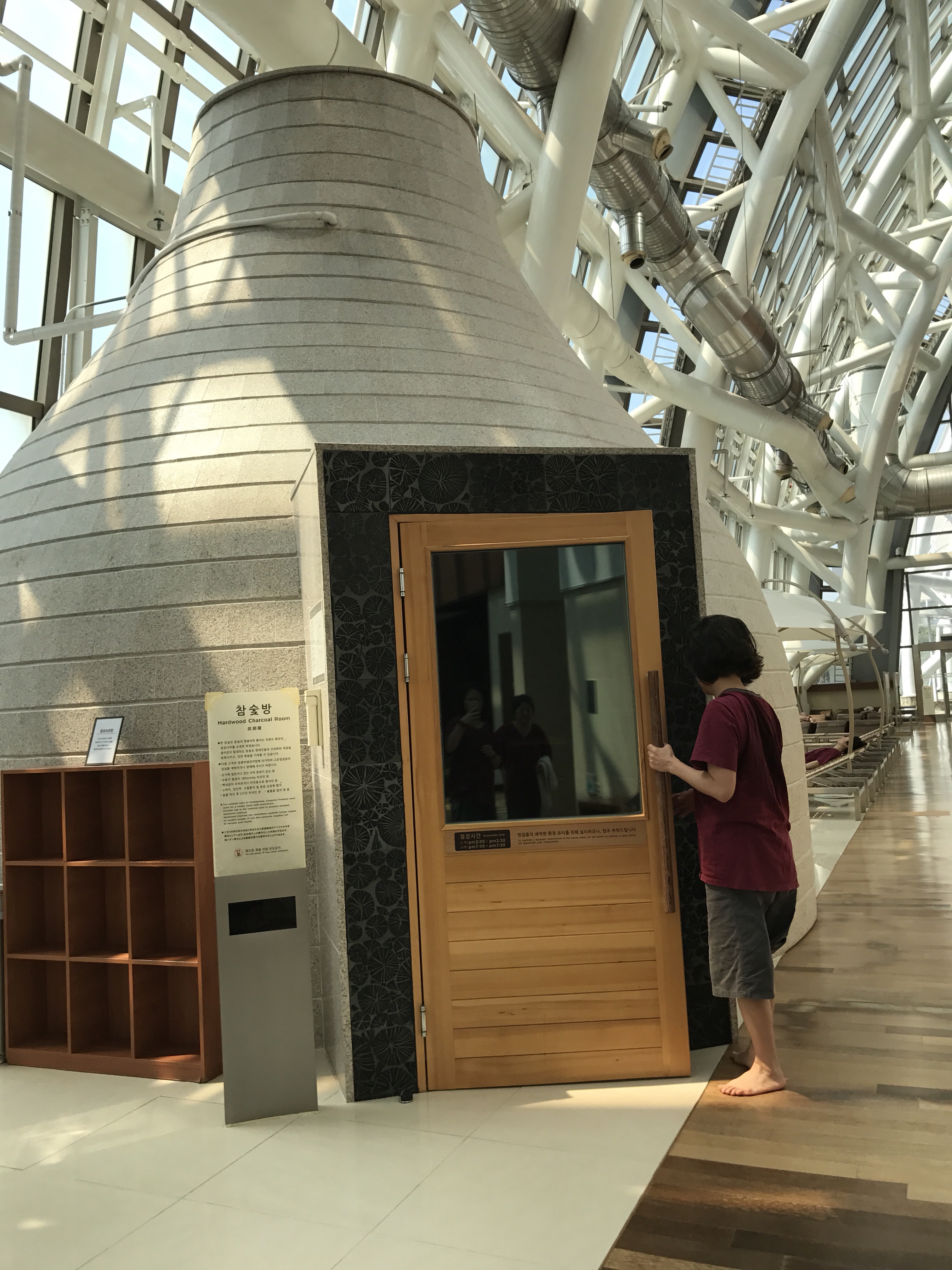 再行入少少,就可以看挑高的半露天設計,有特殊採光就顯得很厲害。往右邊走是室外足浴池,左邊則是個桑拿浴及和汗蒸幕。