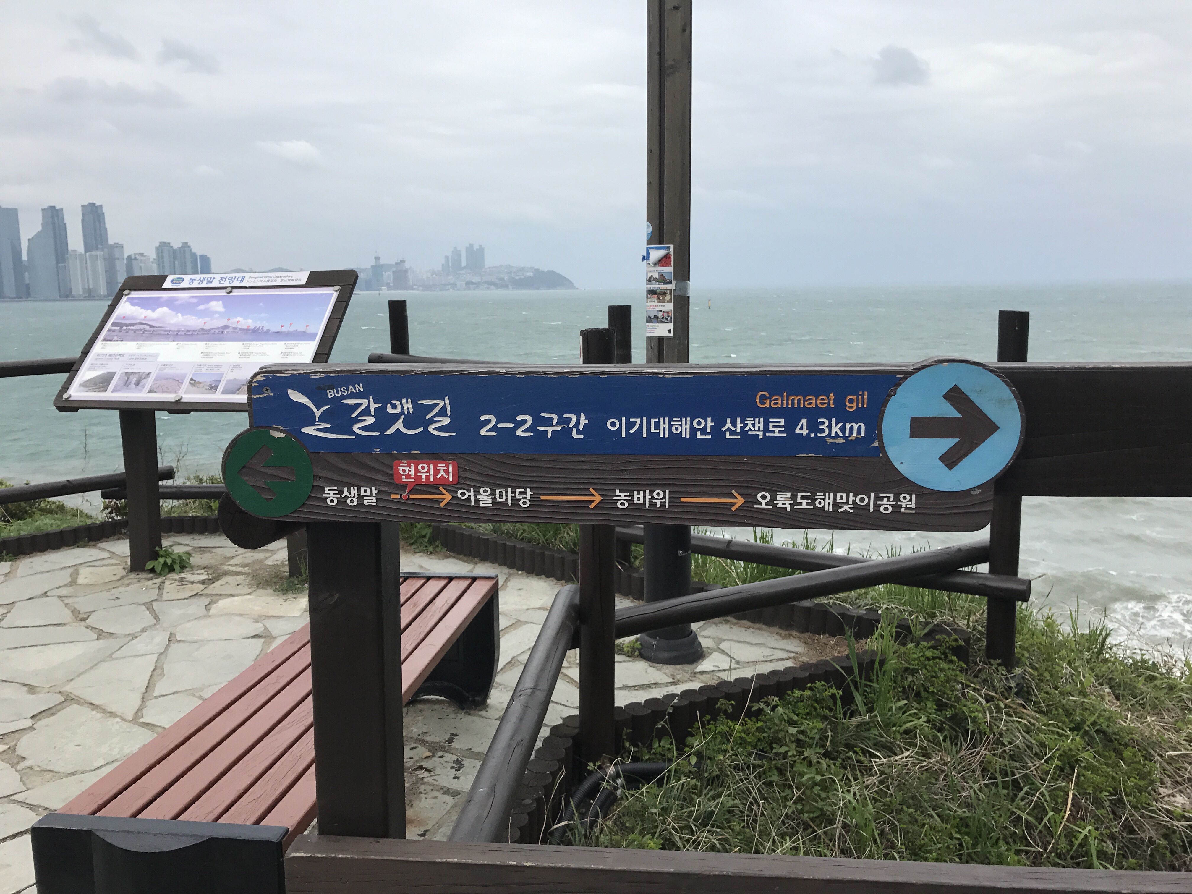 看到👆🏻👆🏻路牌就知道終於走完這條海岸線✌🏻✌🏻✌🏻 全程都好大風😱🤦🏻♀️站在這裡可以看到「廣安里大橋」的美景🤨🤨,過了這裹就到「東山尾」
