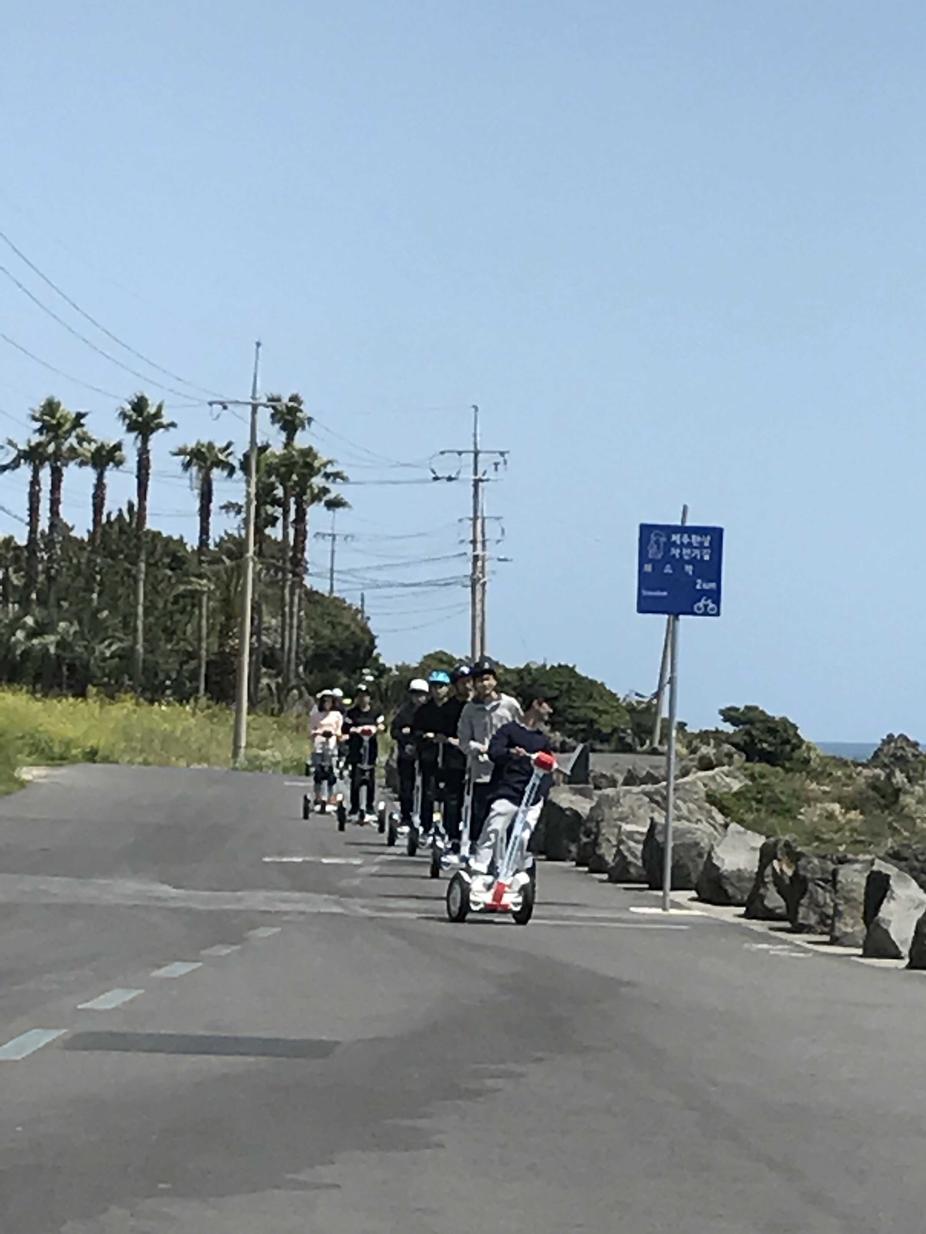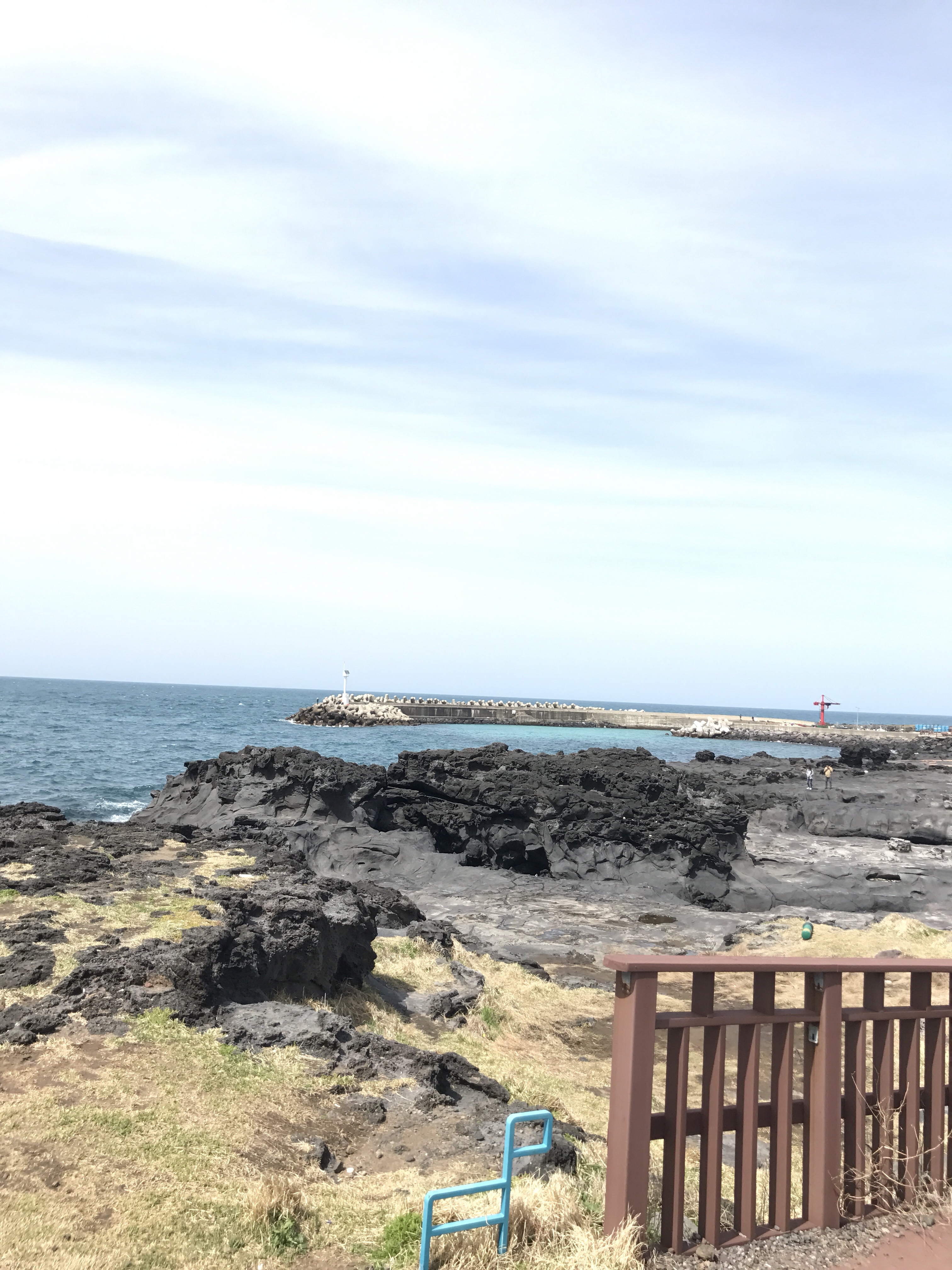 💥幾十個岩石凸現在海邊,與大海相輝映,形成絕美景色。沿著奇岩絕壁與綠蔭而形成了秀麗景觀的環繞道路。有得多韓國人都會來這邊徙步。今天的風浪很大,天氣陰陰的。
