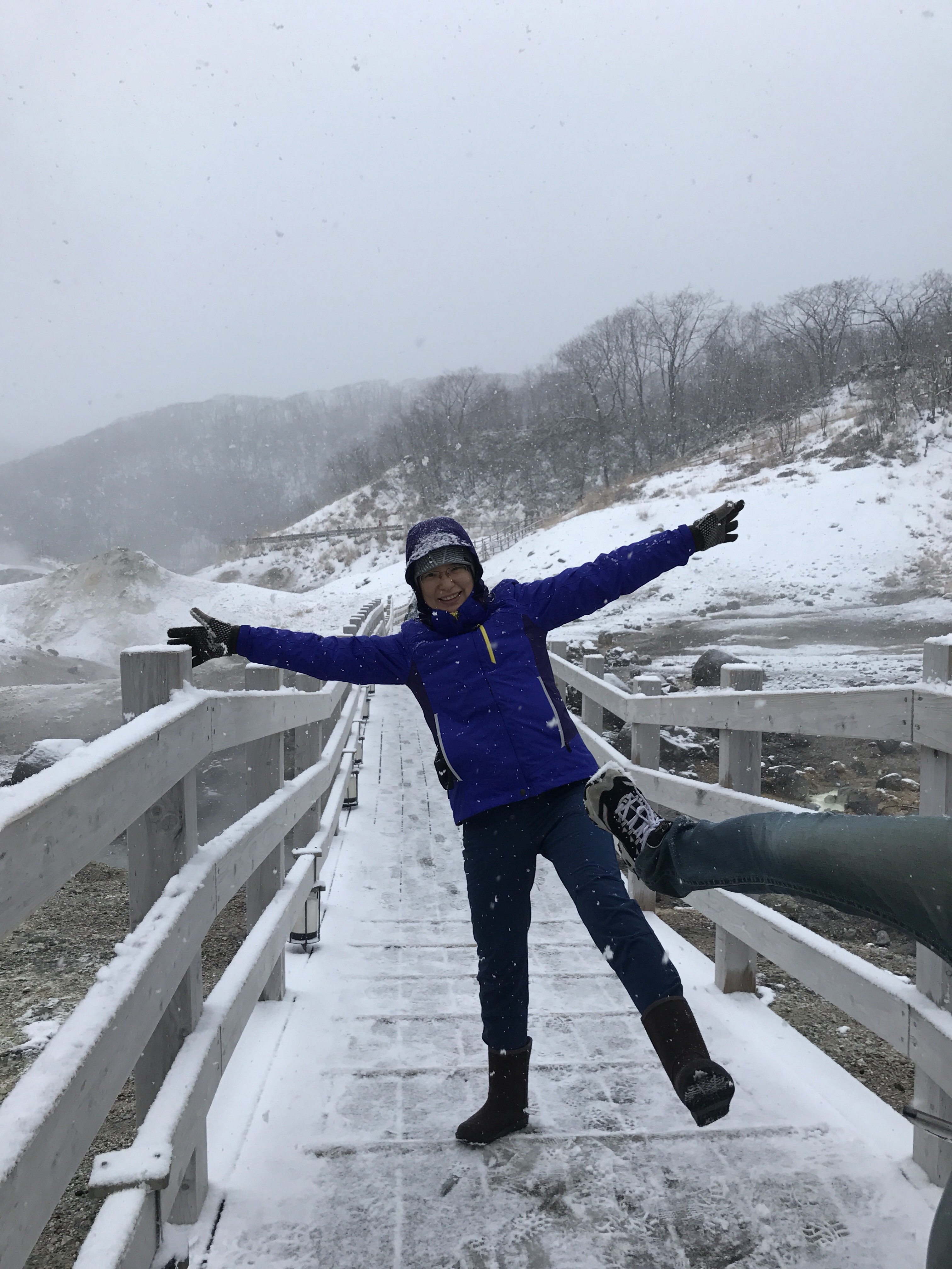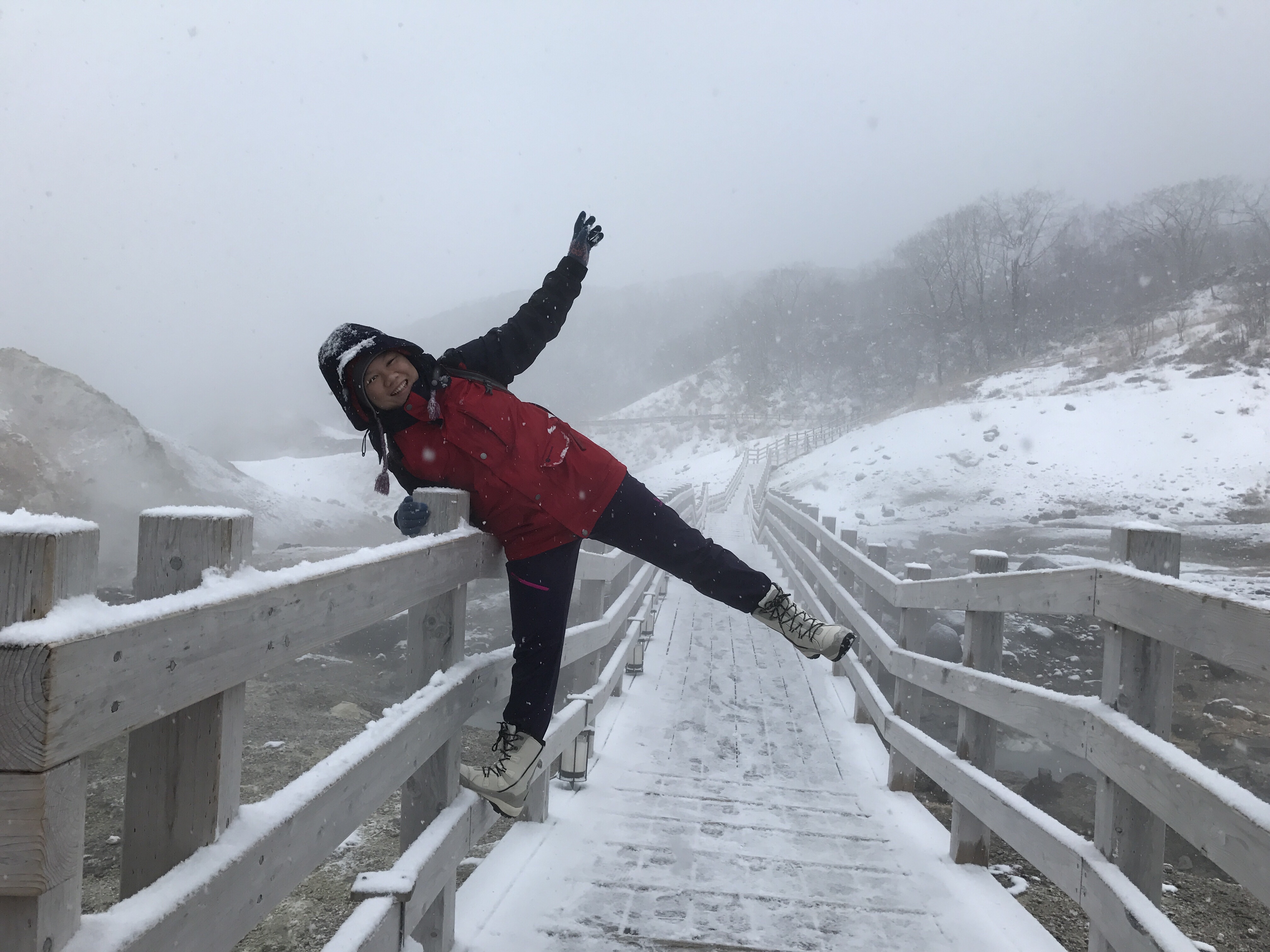 享用完早餐,回房間收拾行李。大約10點出發去坐巴士🚌到登別駅站。我們帶著大包小包去等候巴士🤦🏻♀️🤦🏻♀️地上滿佈雪,行李箱很難拖。