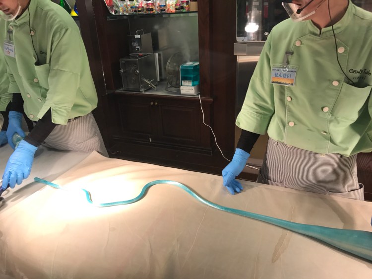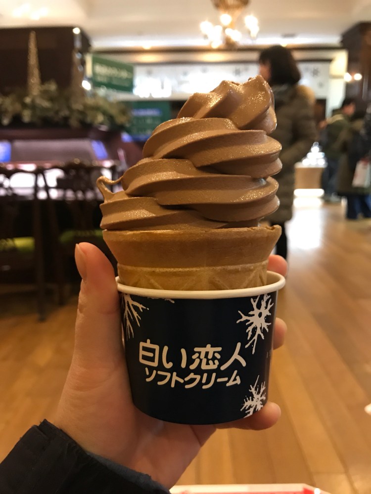 我沒有入工廠參觀,獨自到「拉博糖果店」觀看拉糖過程 和 到商店嚐「白色戀人」雪糕。