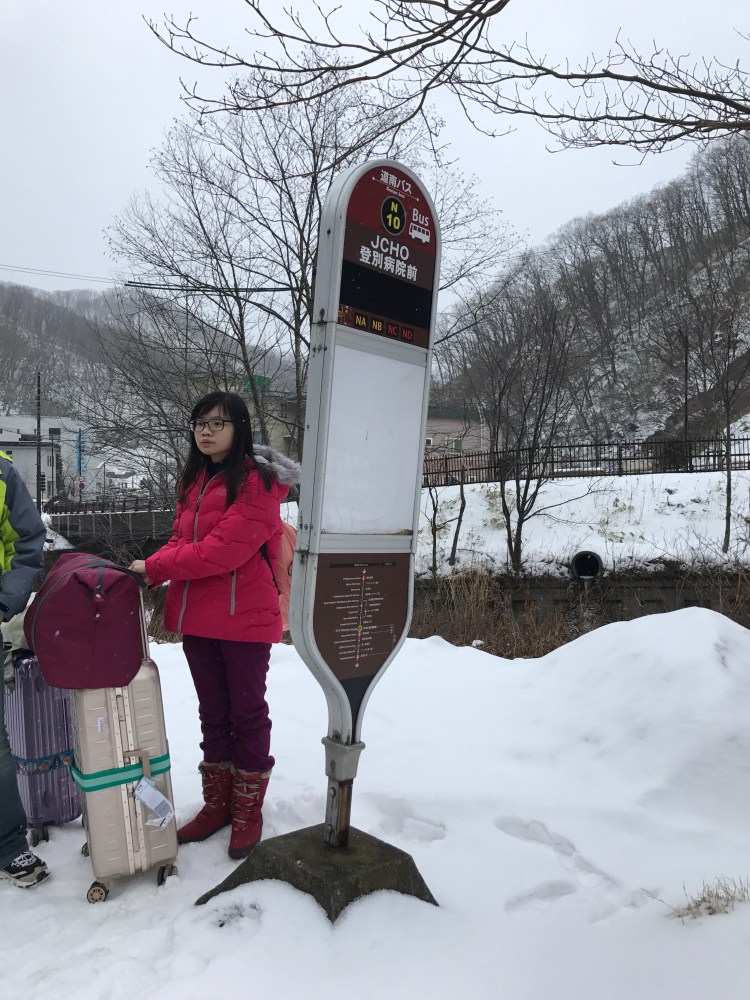 到達「登別」後,先轉巴士🚌到酒店放下行李。車程大約 20分鐘,在「登別病院前」下車。下車後過對面馬路就到旅館 ~ 「鐘花亭」