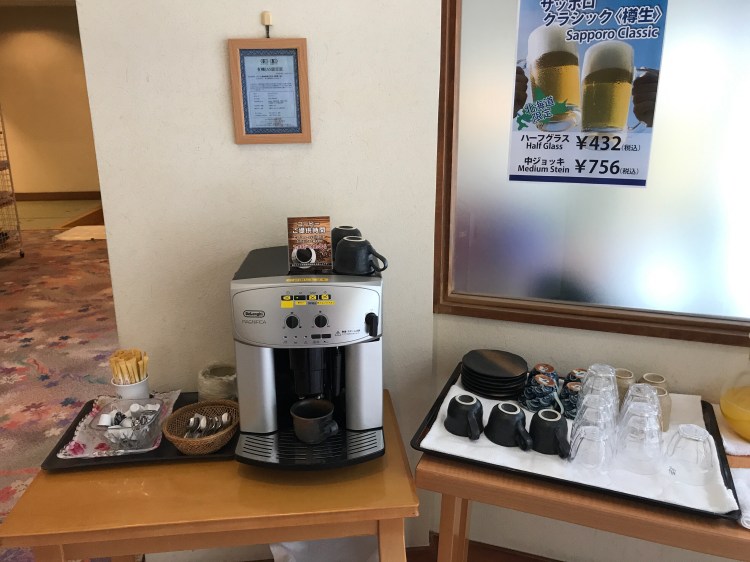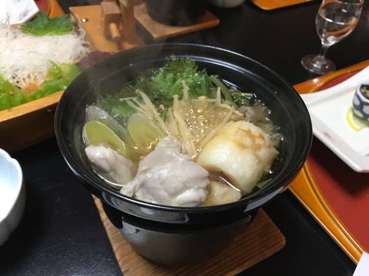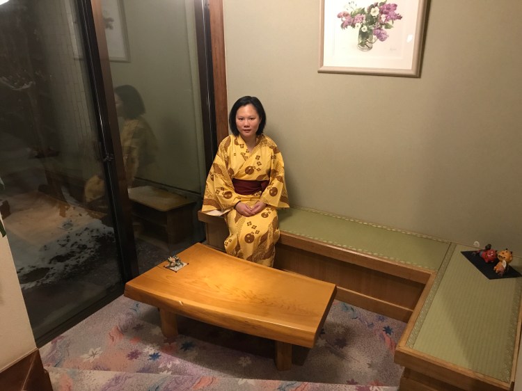 我們預約了6:30晚餐,回到旅館,職員在房間放好枱。是日晚餐 – 傳統日式和食。