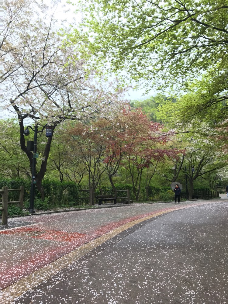 今天天氣不太好,下微雨,櫻花🌸花瓣隨著雨水散落地面,很浪漫😍🤨