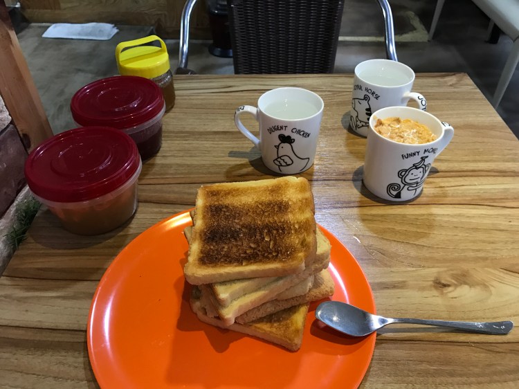 一早起床梳洗,民宿包早餐:麵包+殼麥片+牛奶/豆奶 配 杏桃醬、藍莓醬和蜜糖😋😋😋😋