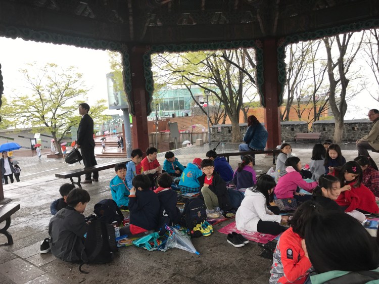 學生旅行到這裹🤨🤨🤨全都在涼亭下避雨🤨🤨