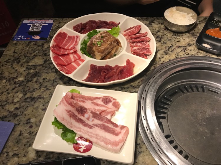 全牛拼盤 + 五花腩肉,上了菜後,我地很快地自已動手烤。