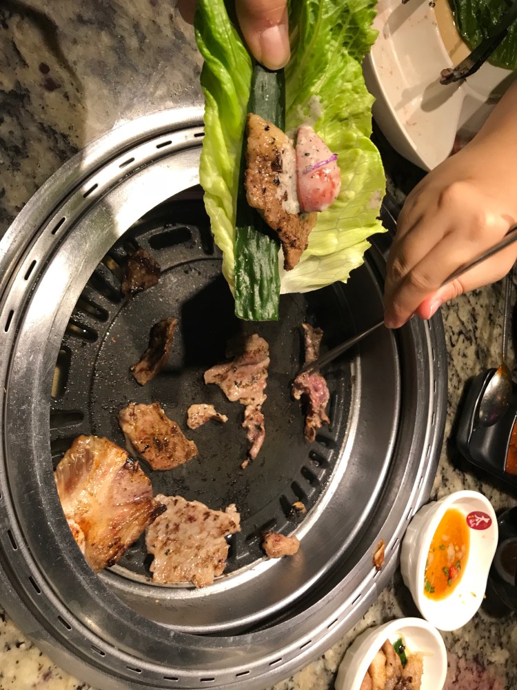 A1出口有一個大商場,由於太熱,我們先去商場逛逛。一樓主要買衣服,二樓主要是餐廳。我們一向都系民以食為天😋😋當我們逛到二樓,看到韓燒店,立刻入座。