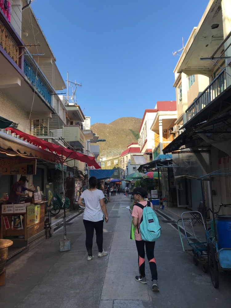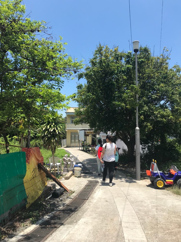步行了10分鐘就到「楊侯古廟」,再走10分鐘就到大澳村。😉😉由於沿路都有補給站,我們不停喝水和飲料,走完這段路,已經喝飽😵😵
