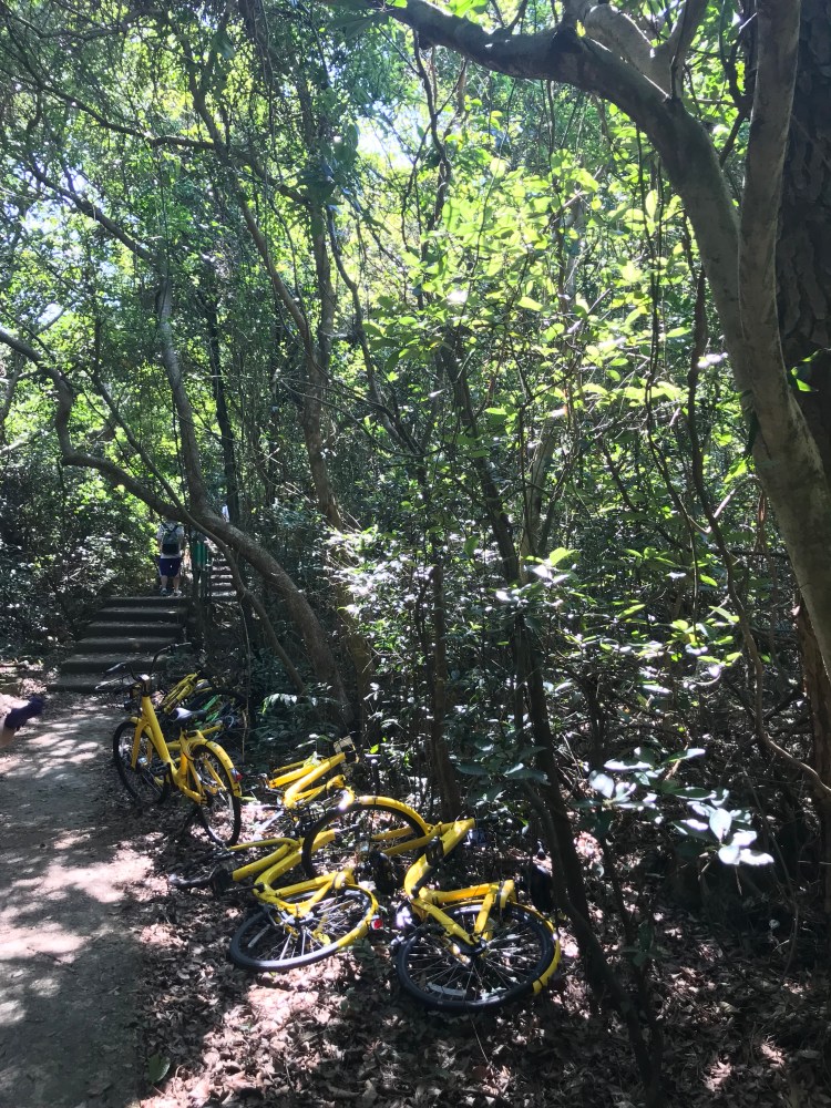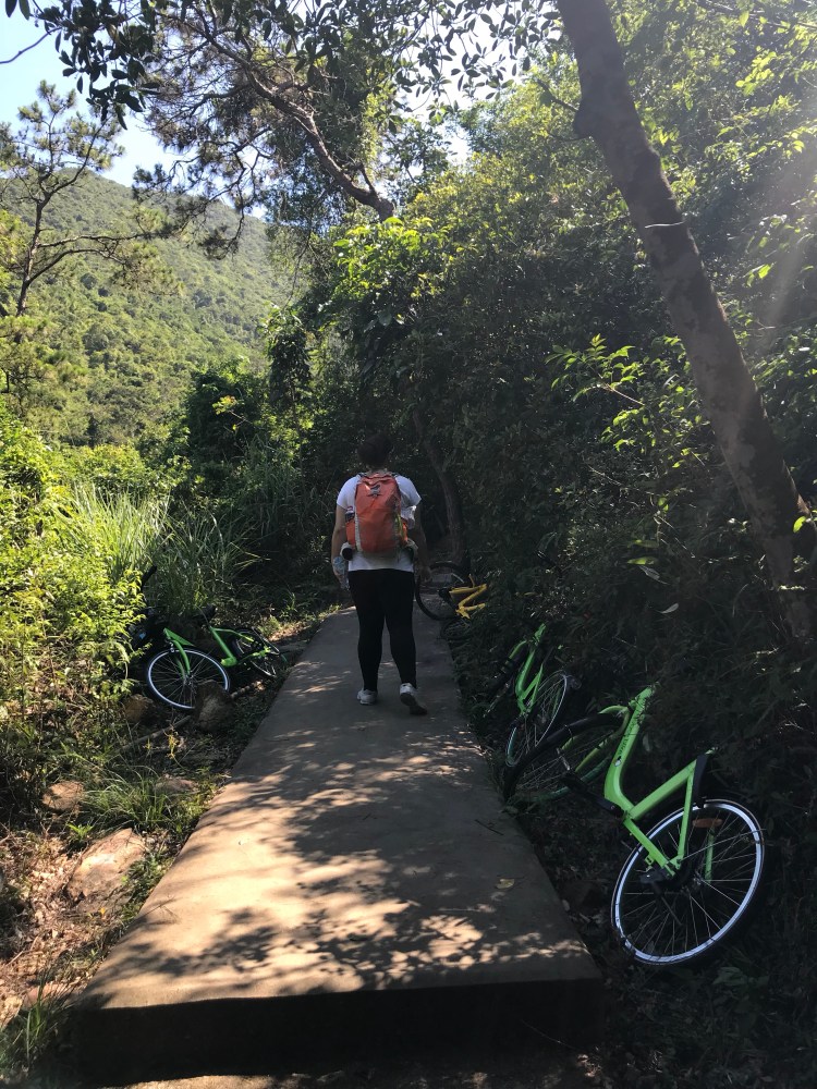 走爬了一半樓梯,還見到有共享單車被棄置在山中(把單車放在山中,太沒有公德心😤,誰會在山中推車下山😵)
