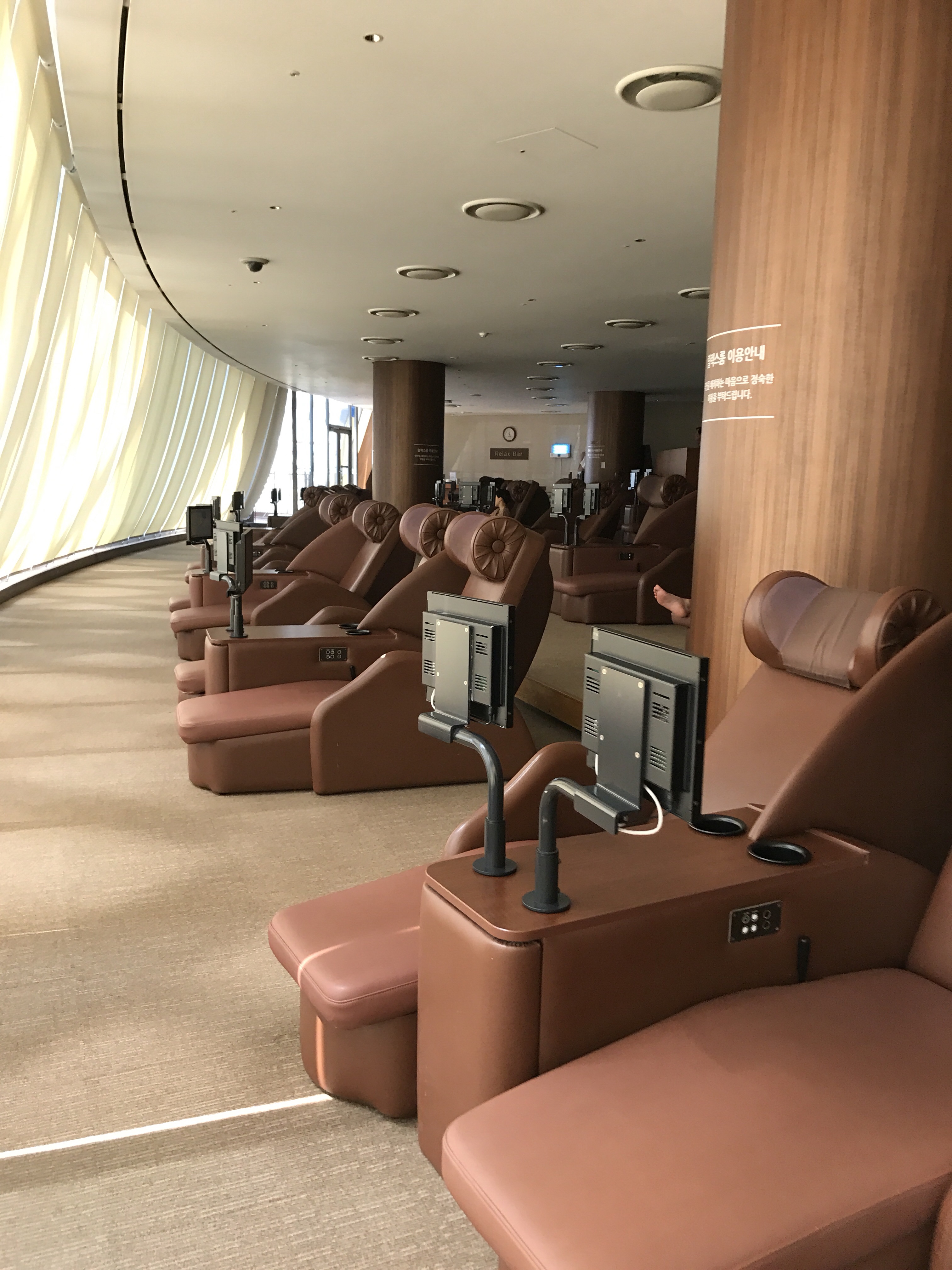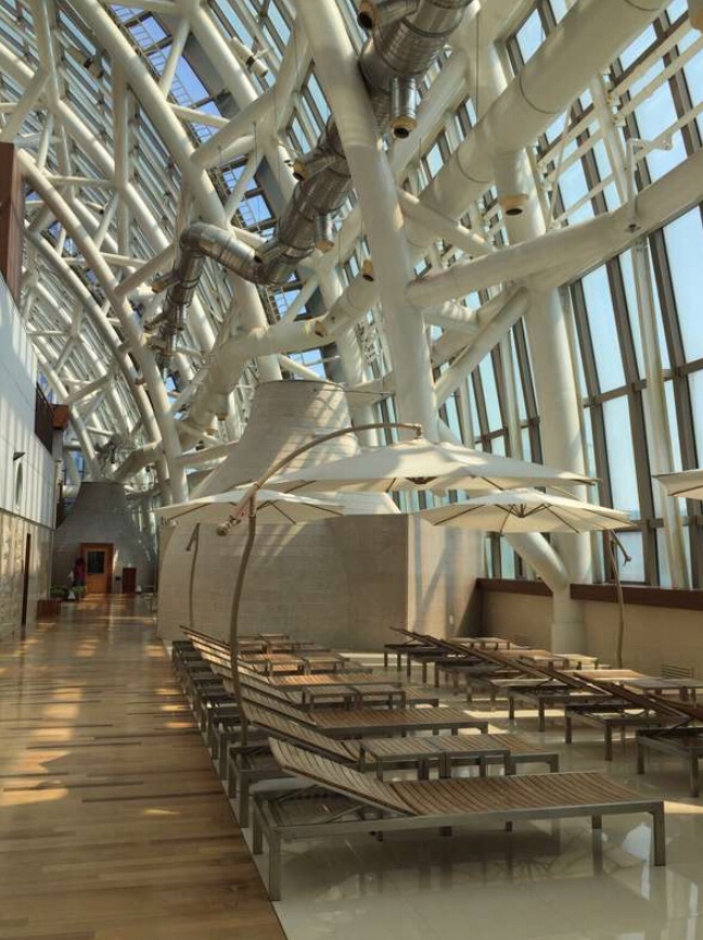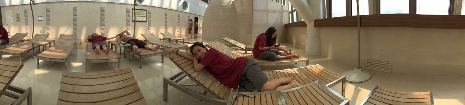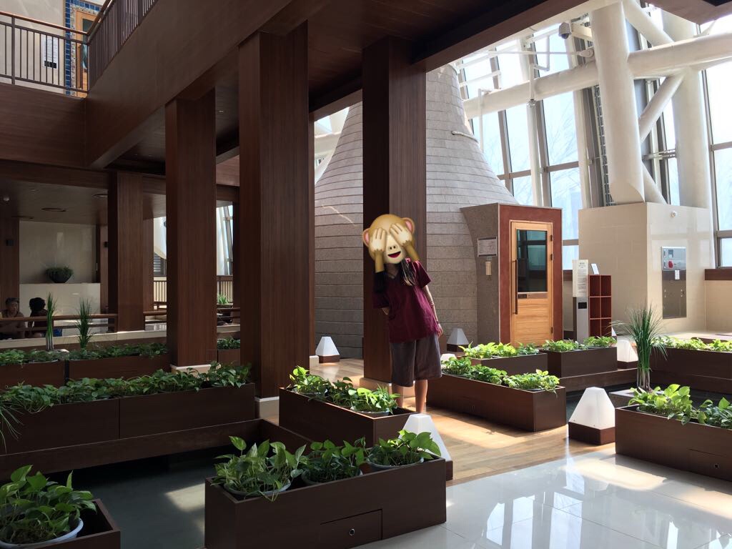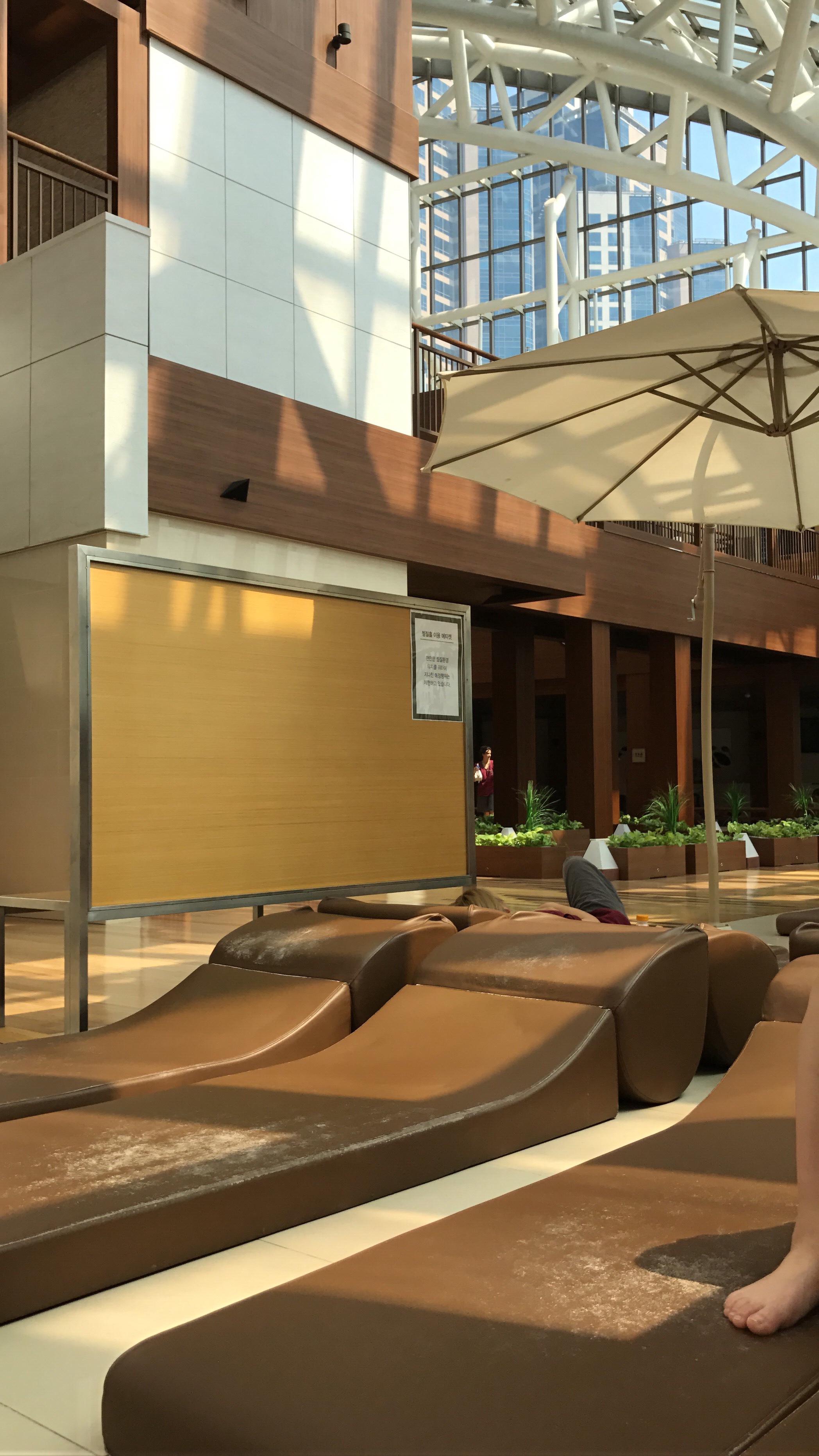 再行入少少,就可以看挑高的半露天設計,有特殊採光就顯得很厲害。往右邊走是室外足浴池,左邊則是個桑拿浴及和汗蒸幕。
