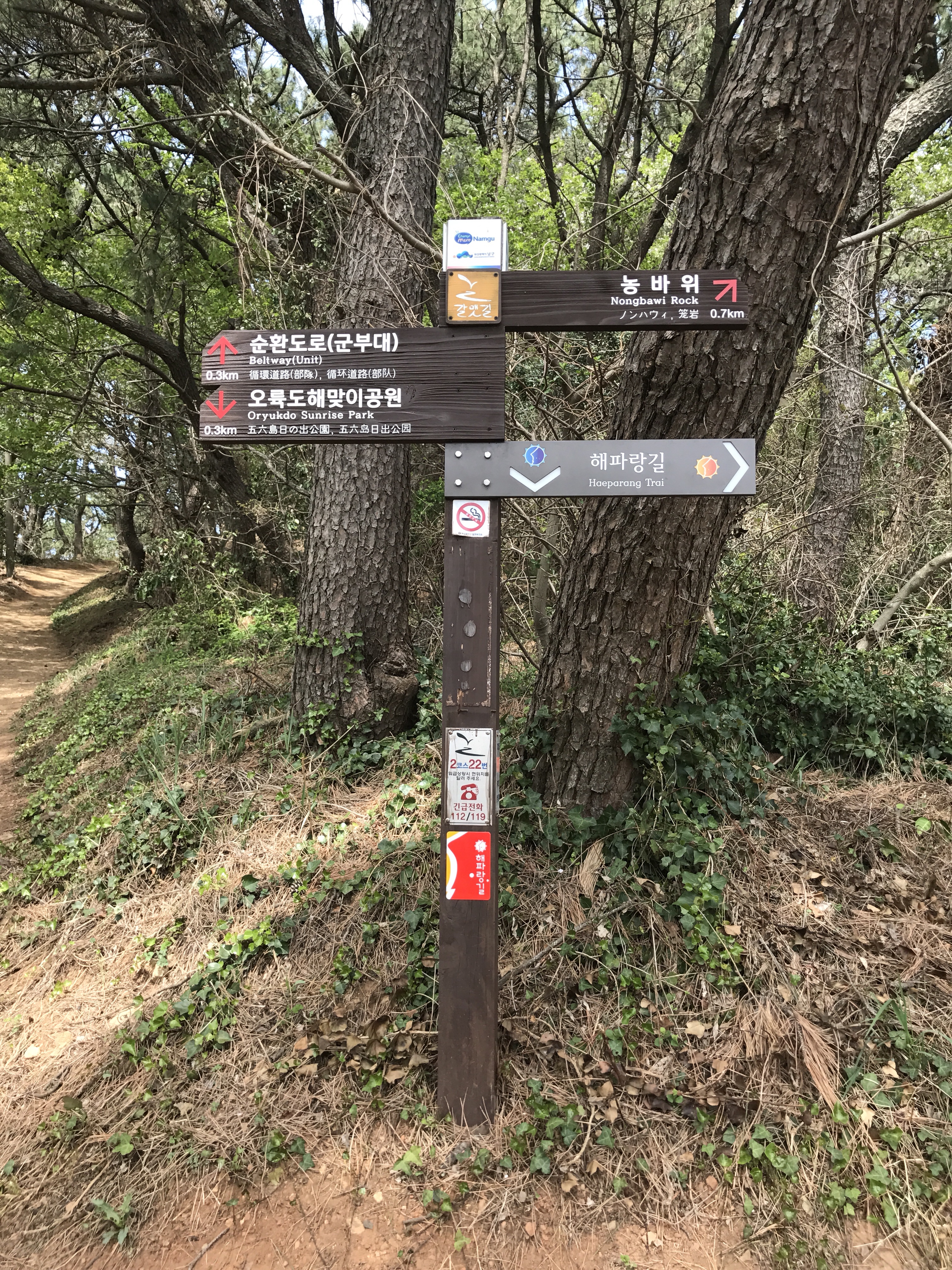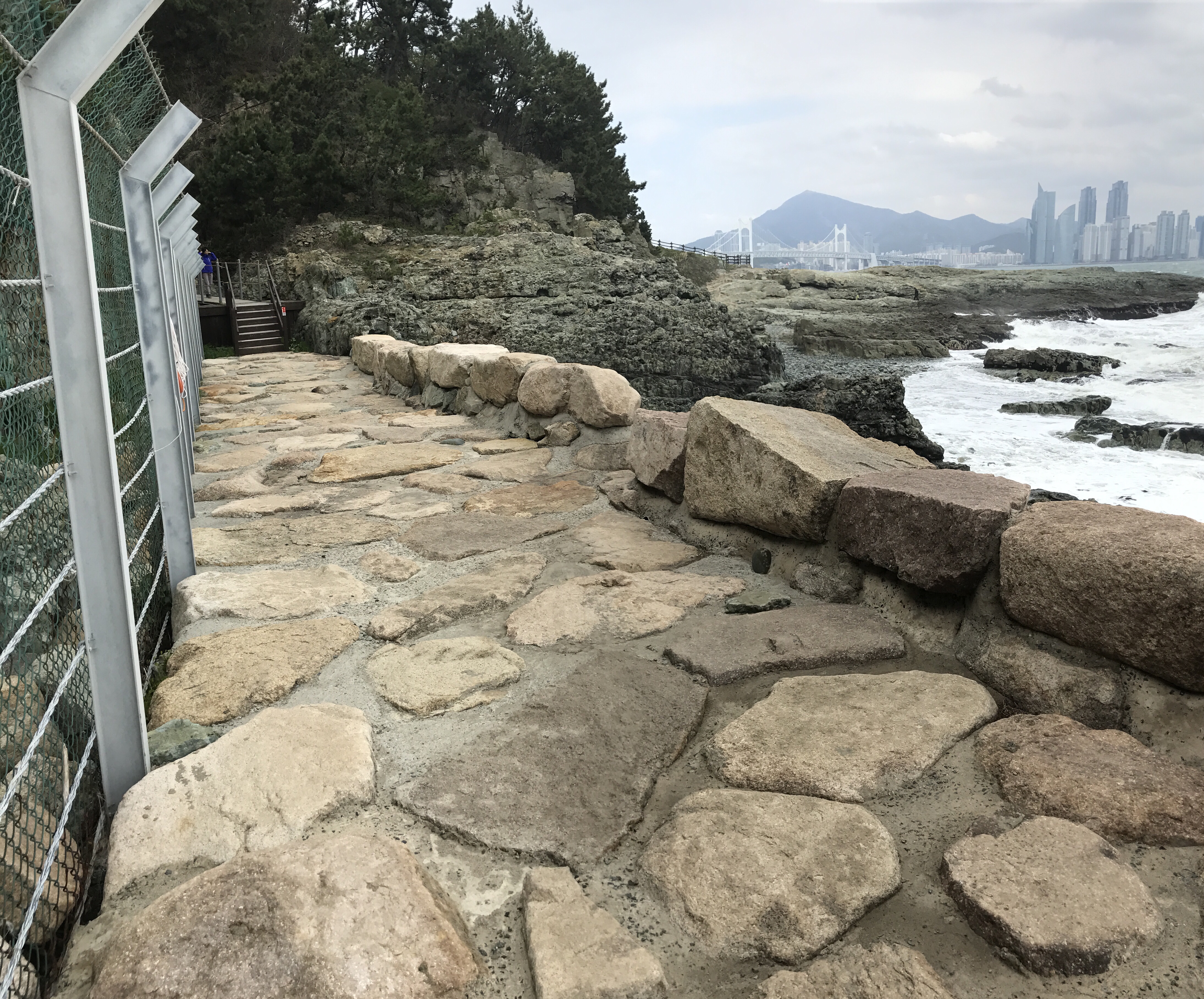 💥幾十個岩石凸現在海邊,與大海相輝映,形成絕美景色。沿著奇岩絕壁與綠蔭而形成了秀麗景觀的環繞道路。有得多韓國人都會來這邊徙步。今天的風浪很大,天氣陰陰的。