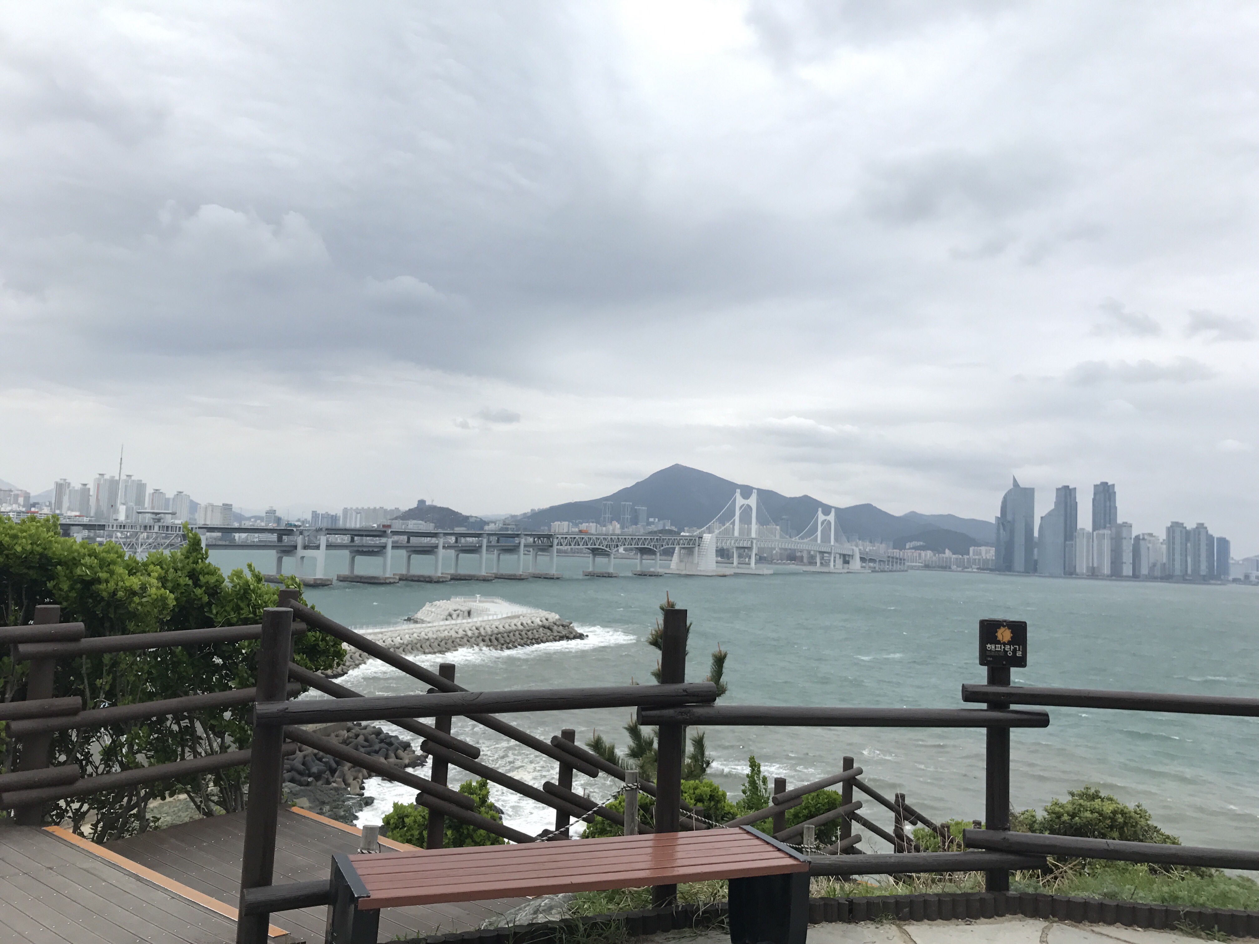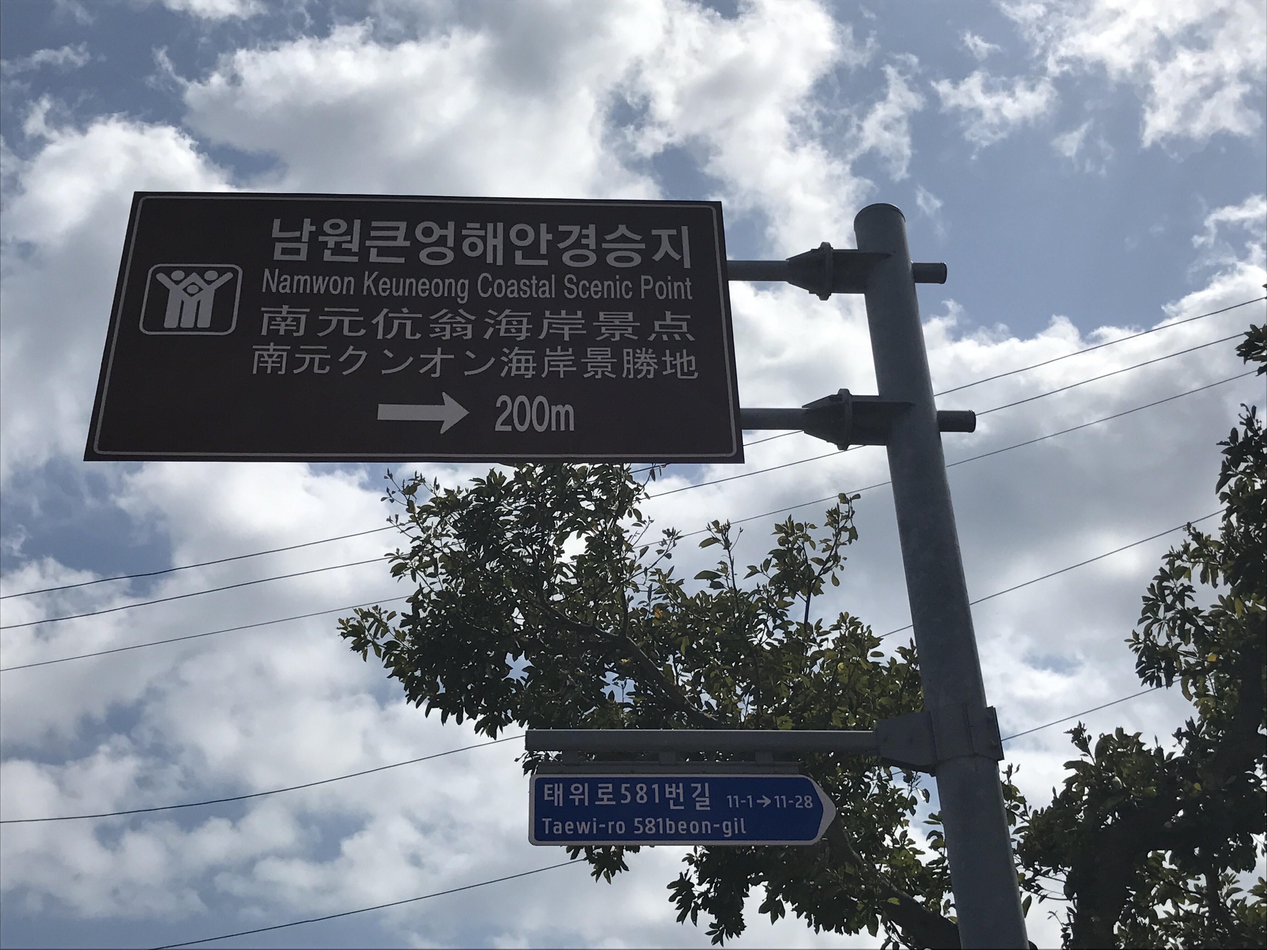 看到👆🏻👆🏻路牌就知道終於走完這條海岸線✌🏻✌🏻✌🏻 全程都好大風😱🤦🏻♀️站在這裡可以看到「廣安里大橋」的美景🤨🤨,過了這裹就到「東山尾」
