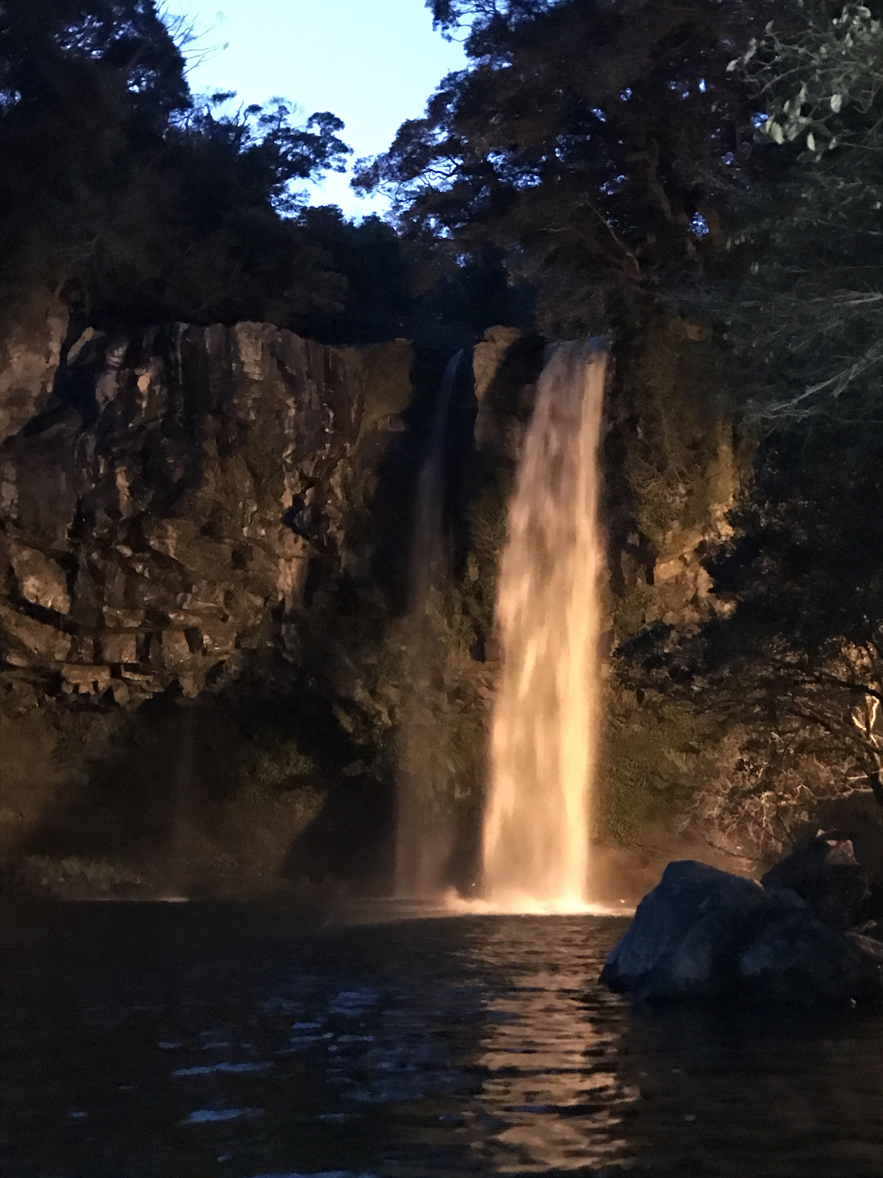 我們慢慢走,慢慢拍照,到瀑布時已經天黑,只能看夜景(有別的風味)