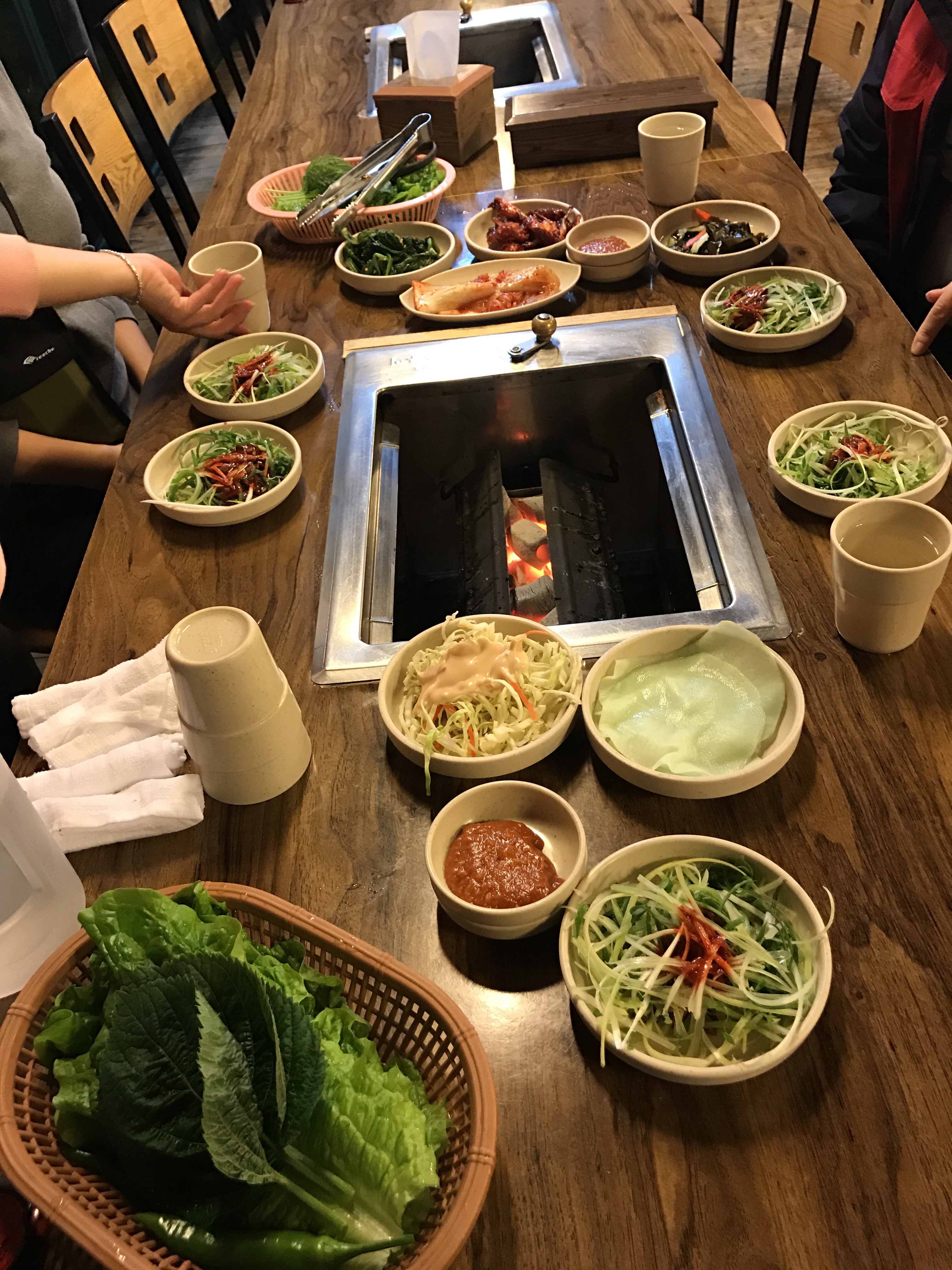 A1出口有一個大商場,由於太熱,我們先去商場逛逛。一樓主要買衣服,二樓主要是餐廳。我們一向都系民以食為天😋😋當我們逛到二樓,看到韓燒店,立刻入座。