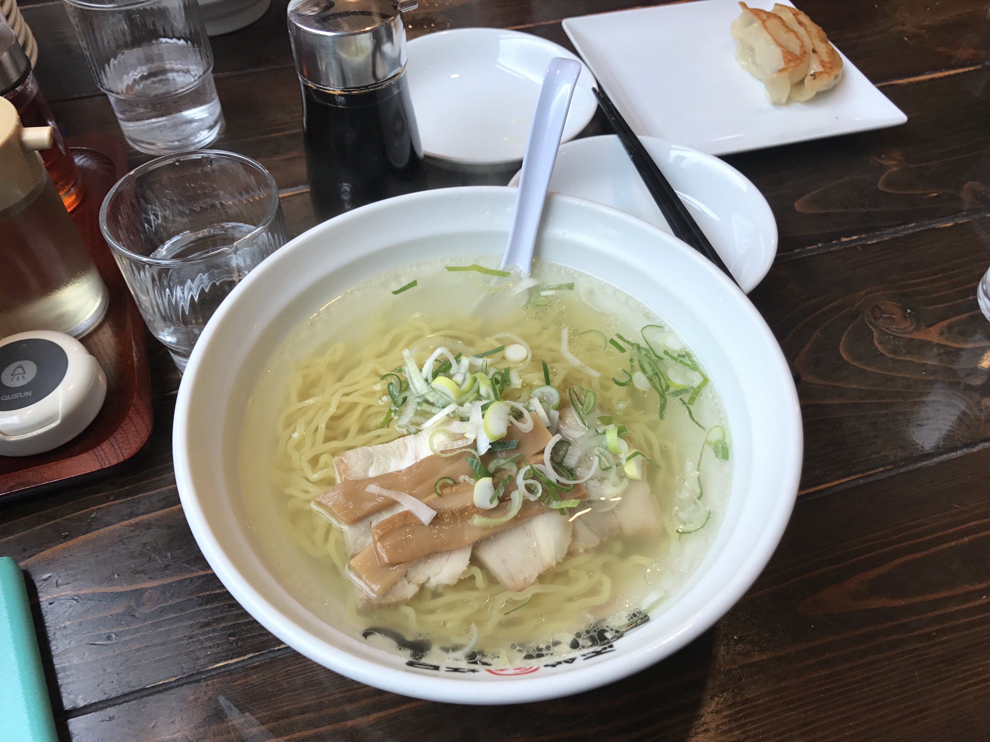 在附近拉麵店吃了拉麵🍜,主要清淡為主 – 清湯豚肉拉麵 + 煎餃子。(這幾天又烤又炸)