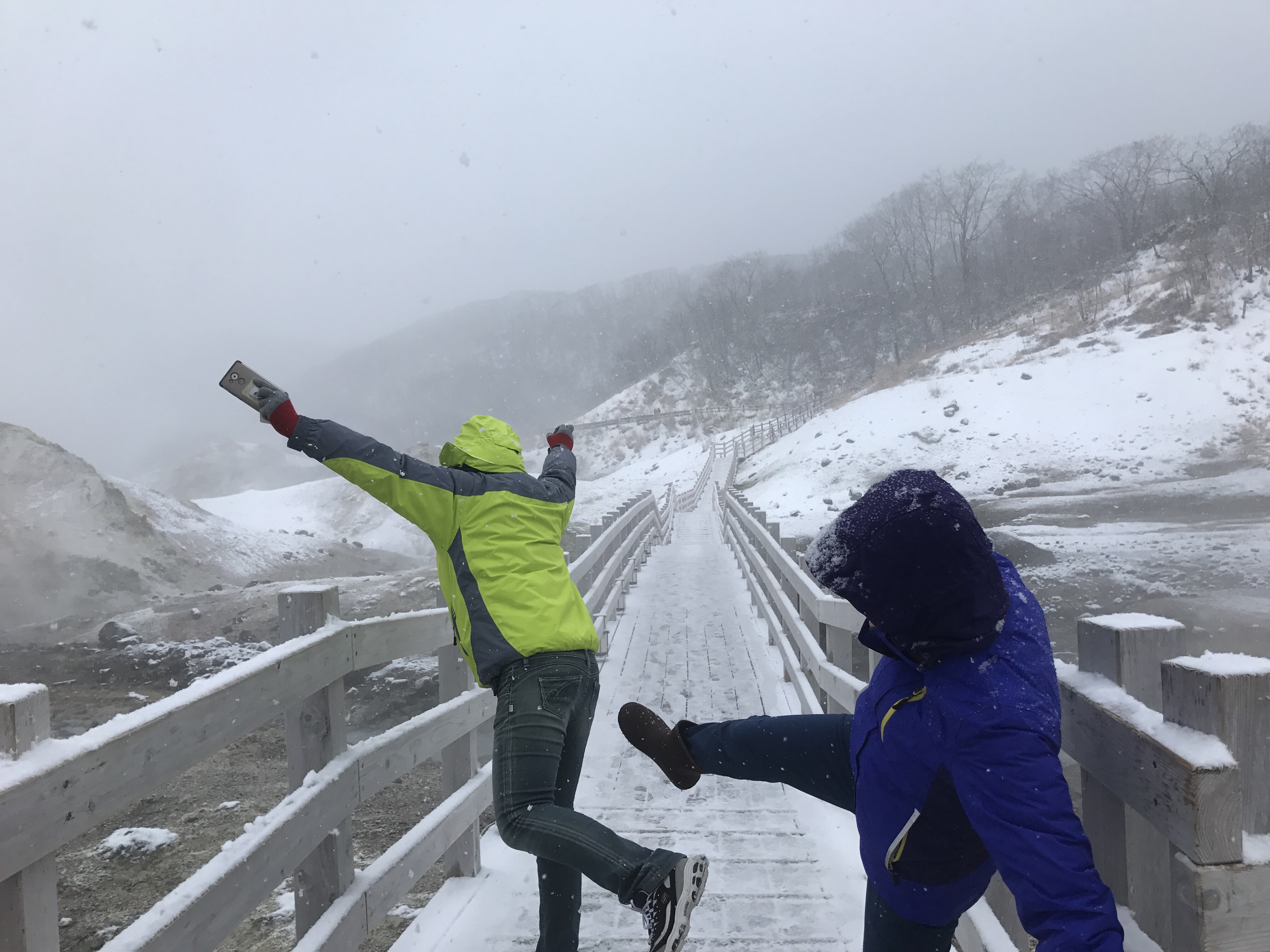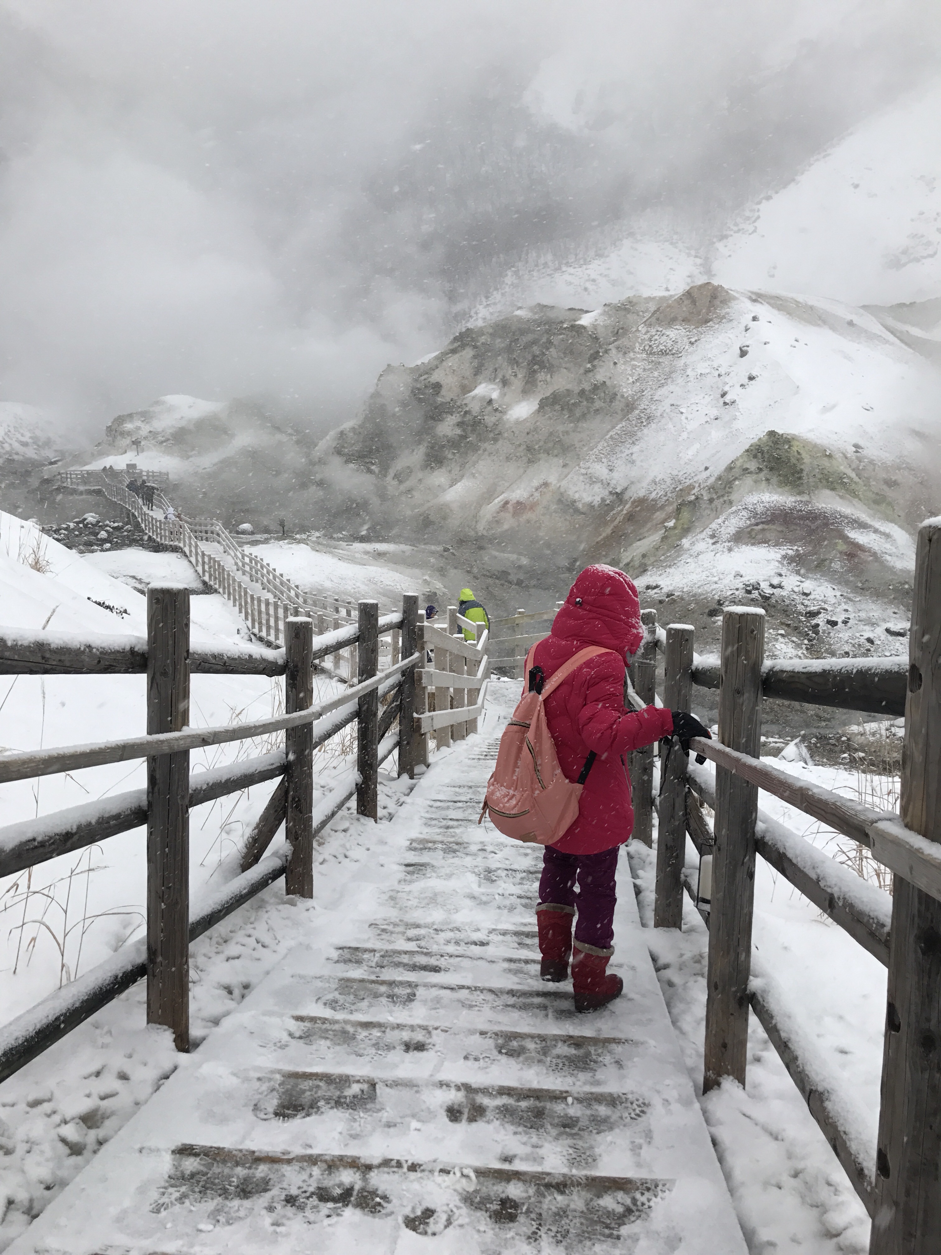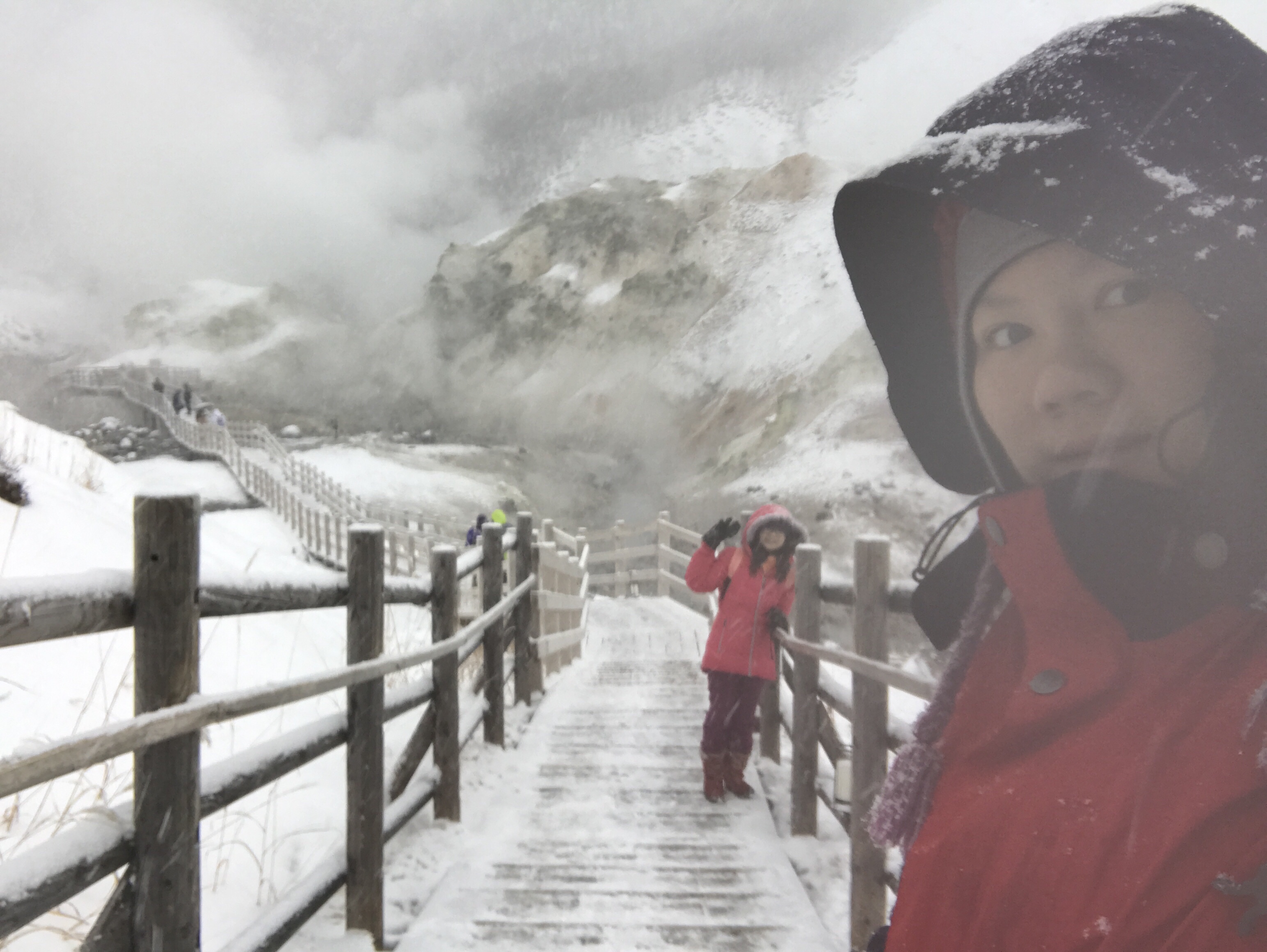 享用完早餐,回房間收拾行李。大約10點出發去坐巴士🚌到登別駅站。我們帶著大包小包去等候巴士🤦🏻♀️🤦🏻♀️地上滿佈雪,行李箱很難拖。