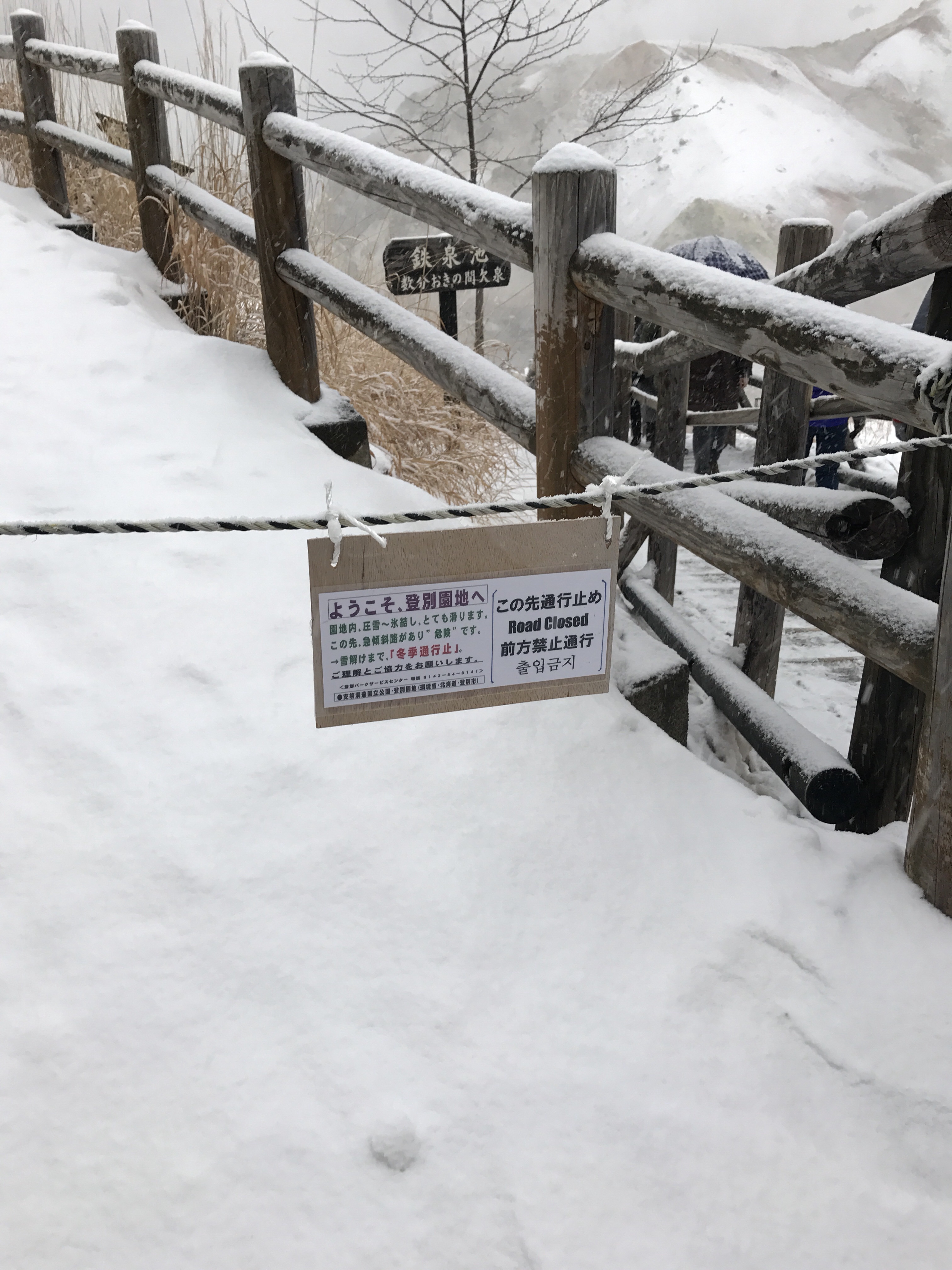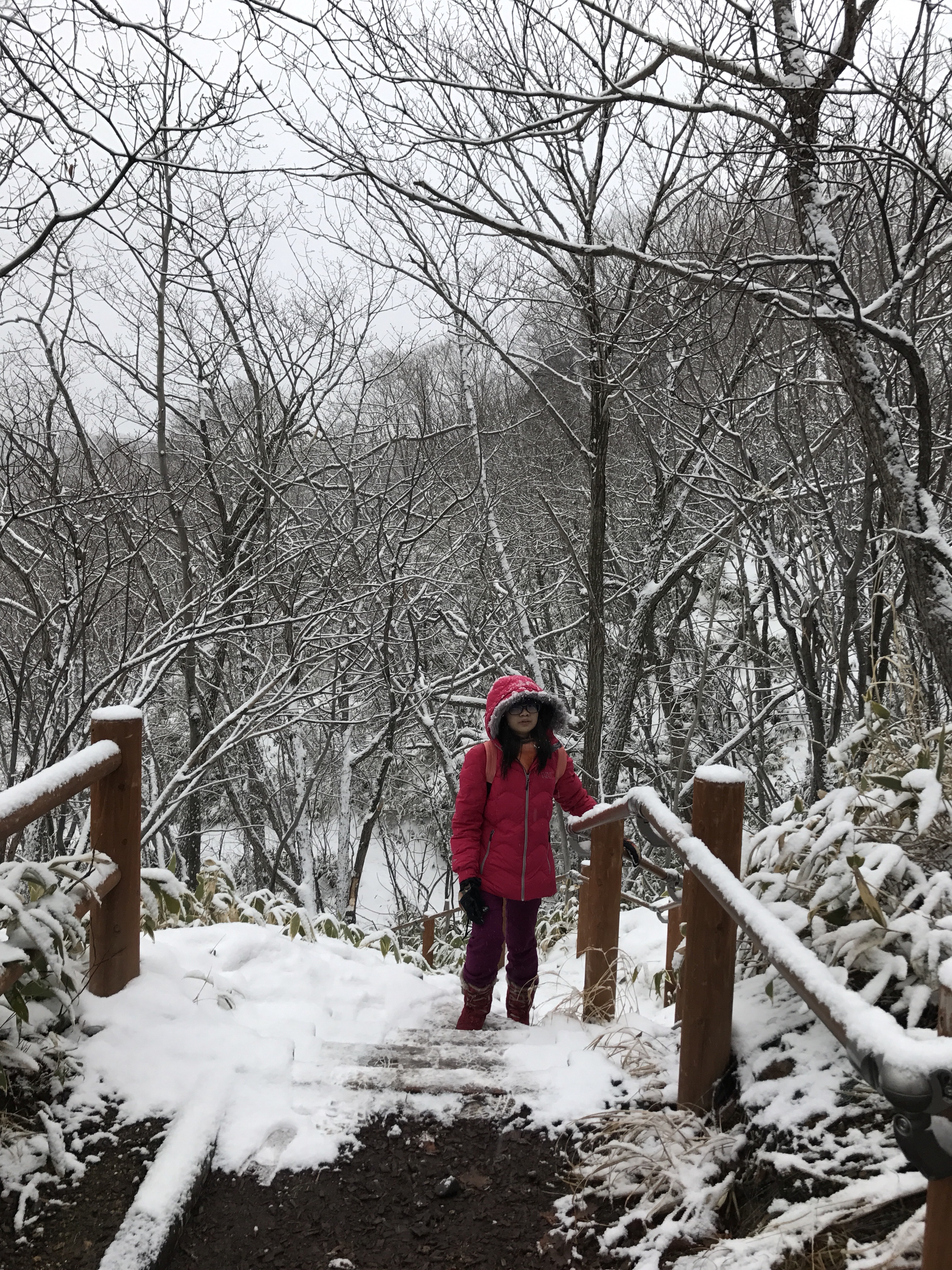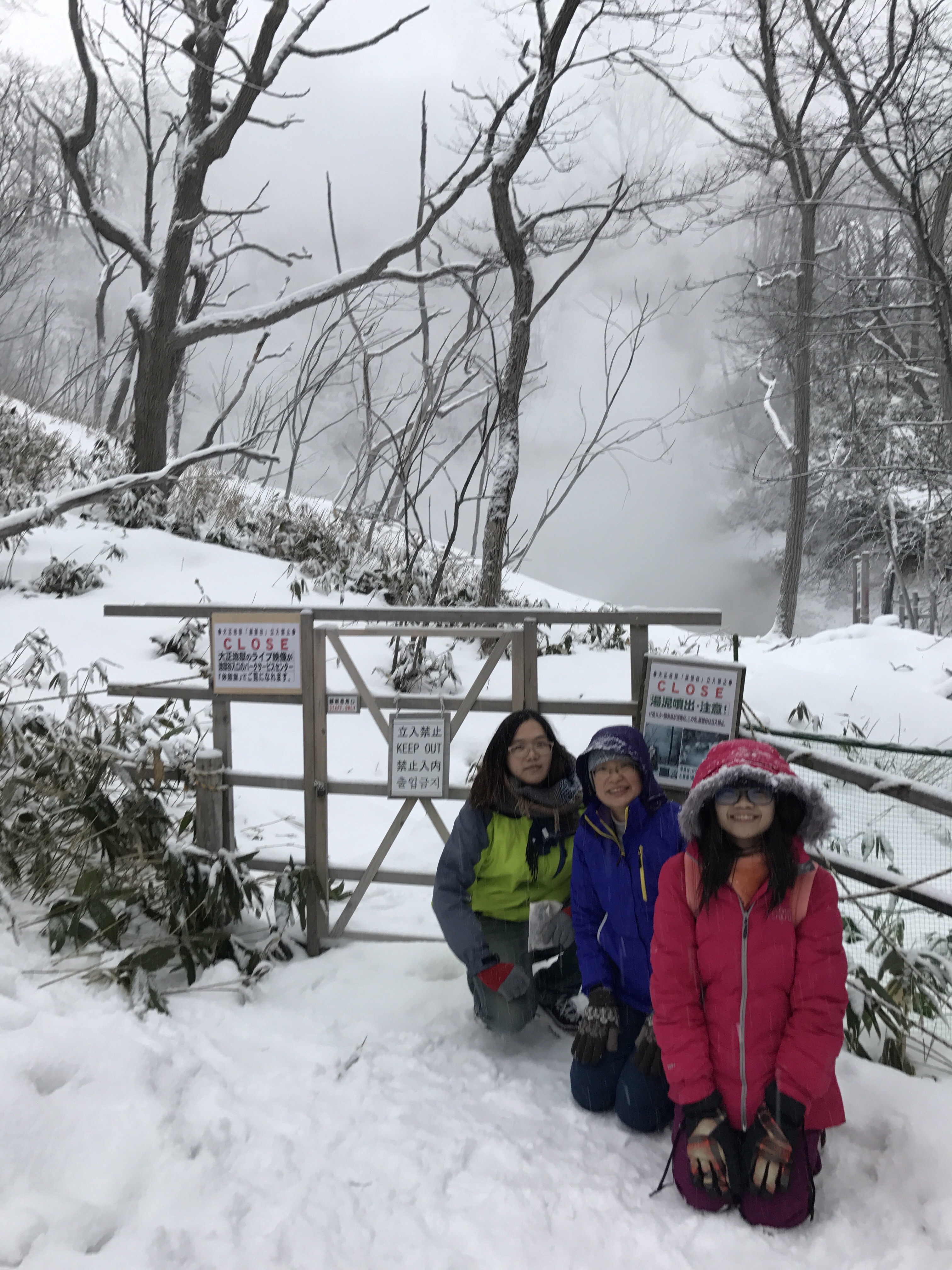 享用完早餐,回房間收拾行李。大約10點出發去坐巴士🚌到登別駅站。我們帶著大包小包去等候巴士🤦🏻♀️🤦🏻♀️地上滿佈雪,行李箱很難拖。