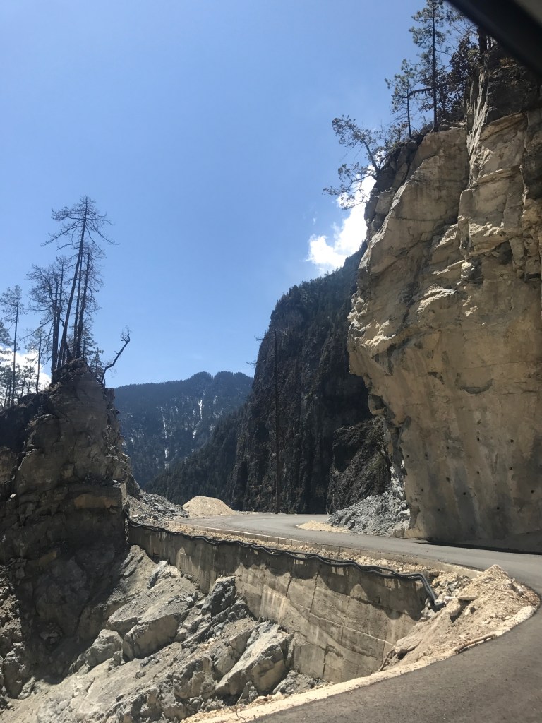 過了兩旁樹蔭,能遠看到那彎曲起伏的山勢,聳立的山尖,氣勢迫人。前行些少就看到第二個山路險峻的警告牌。