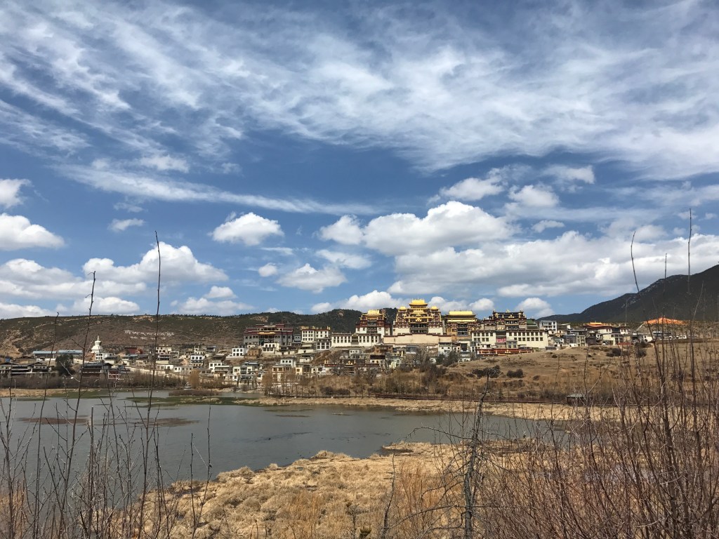 早上在民宿吃過早餐後,坐了十分鐘車來到松贊林寺。松贊林寺在香格里拉市區五公里外,大片水草豐茂的濕地像塊瑰麗奪目的綠寶石,遠處山腳一座金光閃閃的寺廟躍然眼前。